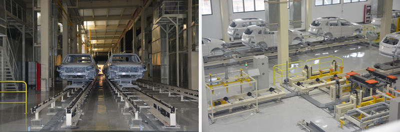 众泰金坛基地涂装输送线,完成车身的涂装生产任务,该车间承担中、高档轿车车身及其备件表面涂漆、防声、装饰及防腐任务。本工程范围包括:前处理悬链、地面滑橇输送线、PVC空中倒置滑橇输送系统以及与此相关的机械部分。